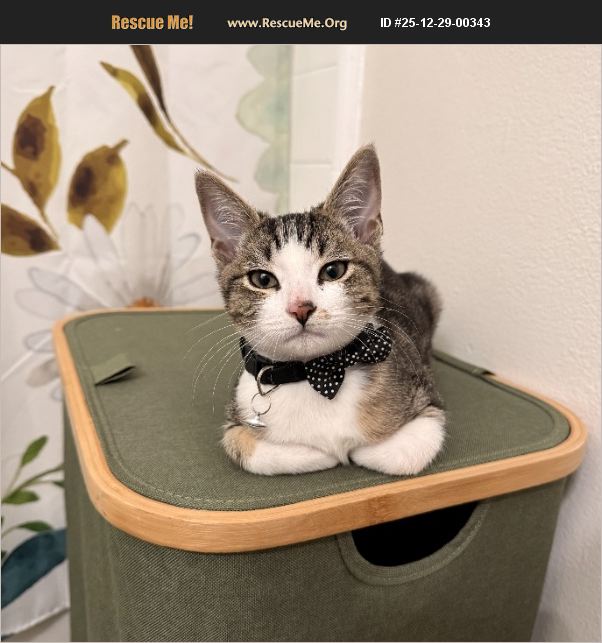 August is a 4 month old kitten, who was born on August 17 of this year. He's a very sweet, cuddly, lovable cat. Loves to play and has a lot of energy. He is litter box trained, and is good with dogs and kids. He would do well in a home where there is someone home most of the time, but is also okay being left alone as long as he has a buddy.