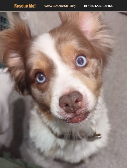 Mini Australian shepherd. Was originally adopted from the Humane Society in 2022. Sweet dog but very anxious to the point he gets destructive. Does not do well in a kennel; he will bite/chew on bars due to his anxiety. Difficult to take him on walks because he becomes anxious, leading to a lot of pulling and barking if he sees any other dogs/people/animals around. However, he does well at dog parks. Sometimes will bark but seems to get along okay with other dogs there. Mostly likes to spend time by himself at home, but will get very anxious whenever you leave the house.