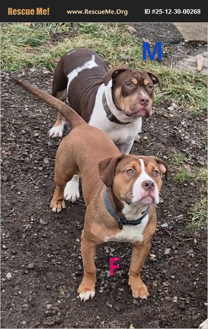 These purebred American Bully are 8 months. Vaccinated, microchipped, vet checked and socialized. Jack is a standard chocolate tri male. Bubbles is a classic chocolate sable. Great dogs would likely do fine with cats.