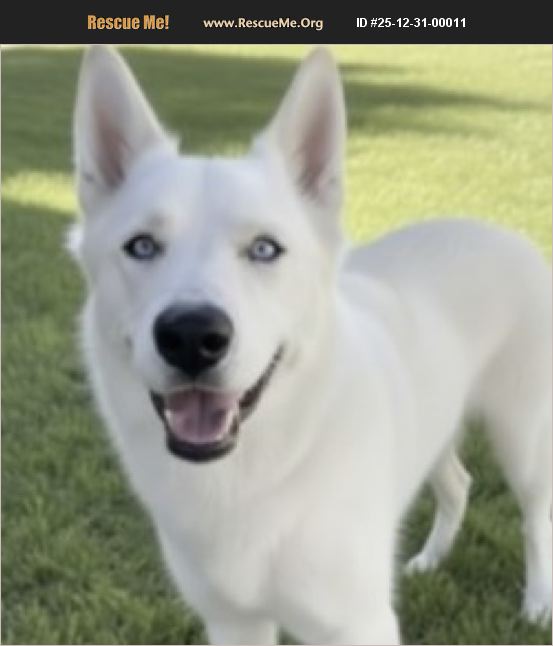 CHIP, A2241958, this handsome young boy is on the Urgent List because he is so scared being in the shelter environment!!! He is on borrowed tie and needs to to saved before he is put on the Euthanasia List!!! NEUTERED MALE, WHITE SIBERIAN HUSKY Shelter: HARBOR Age: 2 YEARS I weigh approximately 52.00 lbs. This animal has been at the shelter since 11/03/2025 and on this list since 12/18/2025. Urgent Listing Reason: Chip is showing signs of FAS (fear, anxiety, stress). During rounds, he often retreats to his cubby when staff approach his kennel.