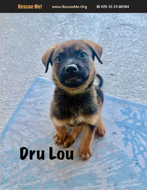 Meet Dru Lou!! Born 10/25 Shepherd-Mal mixes. Smart and eager to learn. Active, attentive homes wanted. Breed experience home. Current on puppy vaccinations, and chipped. Neuter contract will be required as part of adoption process/approval. Clermont-FL We do require an approved application and homecheck to meet any dogs in rescue. Please visit our website to apply pr send us an email inquiry.
