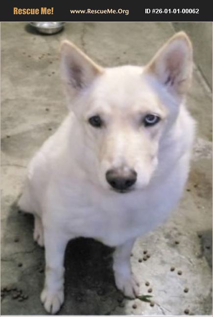 MAX, A2246064, is so scared in the shelter environment and hides in his cubby trembling!!! The shelter Urgent Listed him and now he needs saving before he is killed!! Please be his hero!! NEUTERED MALE, WHITE SIBERIAN HUSKY Shelter: SOUTH L.A. Age: 5 YEARS, 76.00 lbs. This animal has been at the shelter since 11/26/2025 and on this list since 12/22/2025. Urgent Listing Reason: showing behavioral decline in shelter, showing stress related behavior. Retreats into cubby, barks and then cowers into the corner of the kennel.