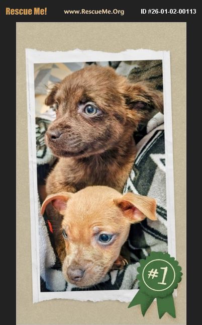 These two are a bonded pair out of a litter of 7, they have an extremely strong bond, so they MUST be adopted together. Just a heads up, the brown pup is female and the blonde pup is male!