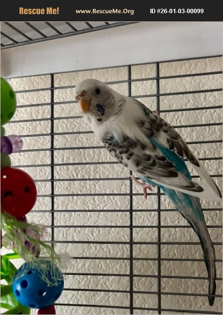 I'm a sweet bird with beautiful black eyes. I can be shy, but I really love to talk to humans and my partner, another parakeet. I love spray millet. Sadly, my parents have to part with me to move out of the country and mom thinks it will be very traumatizing to me. Please adopt me and I will show you years of job.