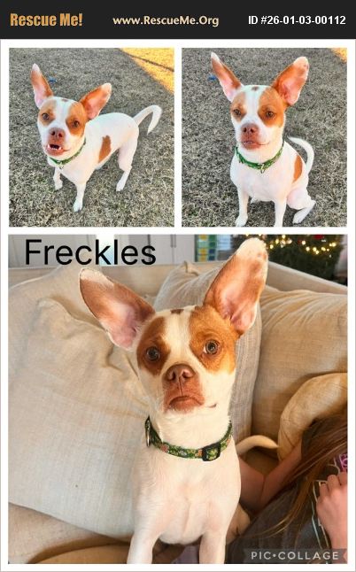 �Ϭ��%90%BE Meet Freckles - Learning, Growing, and Full of Joy ��%90%BE�Ϭ Breed: Boston Terrier mix Age: 1.5-2 years Weight: 26 lbs Freckles has come a long way since coming into foster care, and it's been really rewarding to watch him grow. He's still working on potty training and leash manners, but he's doing much better and continues to improve with consistency and guidance. He still has some puppy playfulness left in him and can get wound up at times, but he responds well to verbal commands and is a very quick learner. Now that he's discovered toys, he almost always has one nearby and loves chewing and chasing them around the house. He's much more relaxed than when he first arrived and far less anxious. Freckles is a sweet, affectionate boy who bonds closely with his person - with continued training, he's going to make an incredible companion dog. He is also doing well with respectful kids. ���� What Freckles Can Do Crates like a champ Rides great in the car Walks okay on leash (still learning but eager!) Not destructive�'�| unless you count his mission to steal all socks & slippers ���%A0��%8F What He's Working On Housebreaking: Freckles needs someone to go outside with him at first because he worries about being abandoned. With time and consistency, he'll learn he can do his business and people won't disappear. Vocal Player: Freckles gets excited and can start growling, barking, or talking during play - he responds well to corrections but needs someone confident and not intimidated by his vocal style. ��%90 Ideal Home Freckles' perfect person is: Patient, confident, and not afraid to follow through with training Someone who likes a dog velcroed to them at all times Home more than not - he thrives on company and being near his people He currently lives happily with other dogs and enjoys their company Respectful kids are welcome - he does well with children ���� What Freckles Loves Treats Snuggles Being as close to his human as physically possible More treats Even more snuggles ���%8D Cute Quirks Those EARS - huge, expressive, and covered in the cutest freckles on the backside �ٴ� ��%90%BE Adoption Info: All of our animals are fully vetted, which includes spay/neuter, up to date on vaccines, wormed, heartworm tested and treated if necessary, up to date on flea/tick/heartworm prevention, and microchipped prior to adoption. Our requirements are non-negotiable and include the following: All current pets in the home must be spayed or neutered if over 6 months of age, unless there is a documented medical exemption with veterinary confirmation. All current dogs must be up to date on Rabies and Distemper/Parvo (DHPP) vaccinations. All current dogs must be on consistent, consecutive heartworm prevention. Past dogs listed on the application must also show a consecutive history of heartworm prevention. To start the adoption process, please fill out our application here: ���� https://www.shelterluv.com/matchme/adopt/WAG/Dog Please also take a moment to read our requirements located in the application. Please note: The dog you're applying for might already have a meet-and-greet scheduled, be on a trial with another family, or has been offered to another rescue within our network. Don't worry though - we're always happy to help you find another great match if that happens! Our goal is to make sure every pup ends up in the best home for their needs (and yours too!). Thinks he's a parrot and will crawl onto your shoulders for a nap