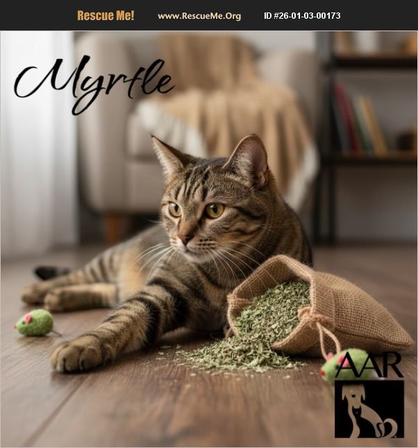 Myrtle is a sweet, timid, young adult cat. She gets along with other cats if they are not intimidating. She likes a nice comfy place to perch on and look out a window. Myrtle does not really like to be held but you can win her over with butt scratches that make her purr and her tail curl into a corkscrew - and Churro treats. If you have some time to get to know Myrtle, or already have another shy cat who needs a friend, come meet this gentle cat to see if she would be a good fit in your home.