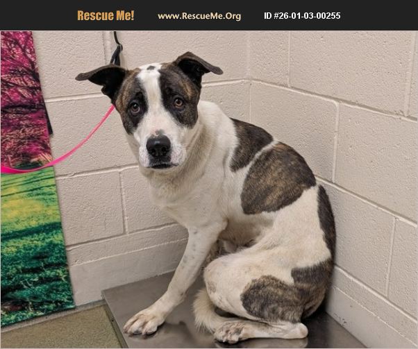 ID#A548243 I am described as a male, white and brown brindle Great Pyrenees mix. The shelter thinks I am about 4 years old. I weigh approximately 63.20 lbs. I have been at the shelter since Jan 03, 2026 and I may be available for adoption on Jan 10, 2026 at 11:37AM.