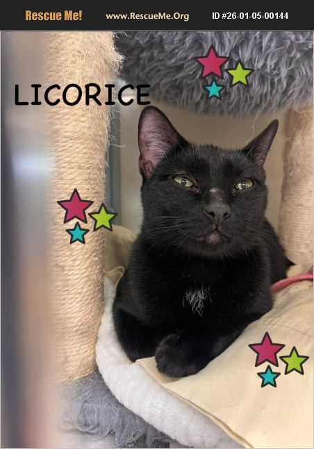 Meet Licorice! Licorice was found outside pregnant and was lucky that a volunteer from Rescue Ridge brought her inside so she could have her babies in a warm and safe home. Now all her babies are adopted and she sits and waits�'�|. Licorice says-I'm all dressed up hoping for a home to go to! Come meet me at Pet Supplies Plus in Wall or fill out an application online to set up a meet and greet. You'll find out how sweet I am once you meet me!!!