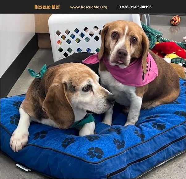 Meet Old Dan and Little Ann, a bonded pair of senior beagles who came to us as strays and were never claimed. Estimated to be around 8 years old, these two are inseparable and must be adopted together, as they are rarely more than five feet apart and clearly find comfort in one another's presence. Old Dan is the more confident of the pair, he loves treats, enjoys working on enrichment toys, and isn't shy about sharing his thoughts. Little Ann can be a bit shy when first meeting new people, but with her brother by her side, her confidence quickly shines through. She is incredibly sweet, gentle, and mellow, happiest when lounging nearby, stopping to smile for photos, or playfully bothering Old Dan. Both dogs walk well on a leash and enjoy leisurely strolls, especially when treats are involved, they'll happily follow you wherever you go if you have snacks in hand. Their bond is truly special, whether they're curled up together for a nap or suddenly bursting into the cutest zoomies. Old Dan and Little Ann are vaccinated, microchipped, and spayed/neutered, and they are patiently waiting for a loving forever home. If you'd like to meet this lovable duo, please fill out an application. All resident dogs are required to attend the meet-and-greet, and please remember that Old Dan and Little Ann will not be adopted separately. https://new.shelterluv.com/embed/animal/212538504 https://new.shelterluv.com/embed/animal/212538533