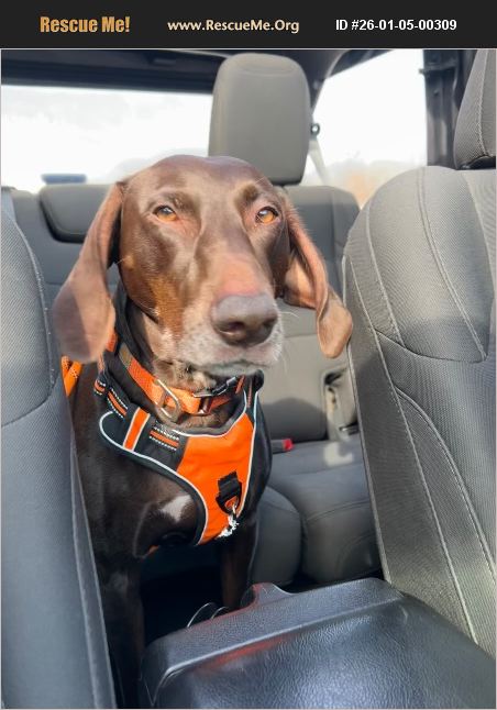 Will be 9 on 1/21 very lovey, funny goofball ball with other dogs,kids and adults. Just like any GSP doesn't know her own size wants to live and be loved all the time. She's been the heart of our family since she was 5 weeks. I have came down with a major heath issue myself and is getting to the point that she needs more which I physically can't give her. Just want a loving home.