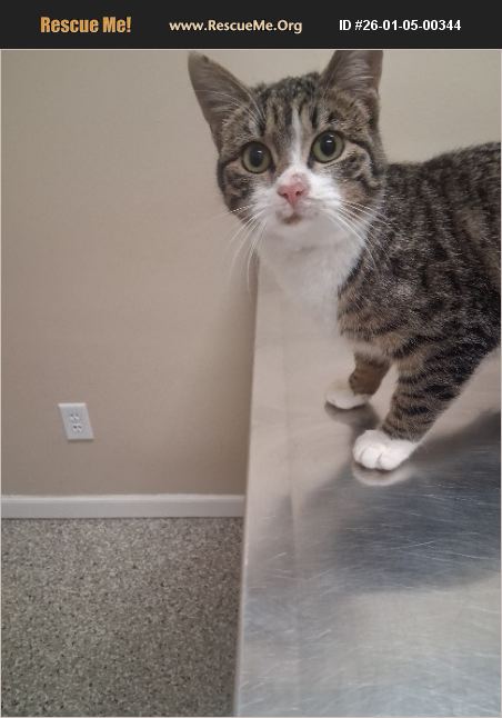 Clementine is a mitted tabby with big green eyes and a cute pink nose. She is about 12 weeks old, and was abandoned in the country. She is very loving and gentle, and enjoys cuddling with me and her rescued kitten buddy Madeline. She is feline leukemia/five negative, up to date on shots, wormed and on flea preventative. She is too young to be spayed. Located in Chariton.