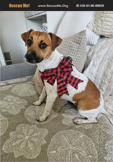 MIA is a 1-year-old female Jack Russell Terrier looking for her forever home. This sweet girl is playful, energetic, and full of life - true to her breed, she loves to chase anything that moves, so a leash is a must for her safety. She's still in her chewing stage, so she'll thrive with plenty of durable chew toys and enrichment. MIA is kennel-trained and sleeps soundly in her crate at night. She's not fully house-trained yet and will need continued training and patience, but she's smart and eager to learn. She currently eats dry dog food and loves nothing more than curling up in your lap for cuddles after playtime. She may be small, but her heart is big - she just wants to love and be loved.