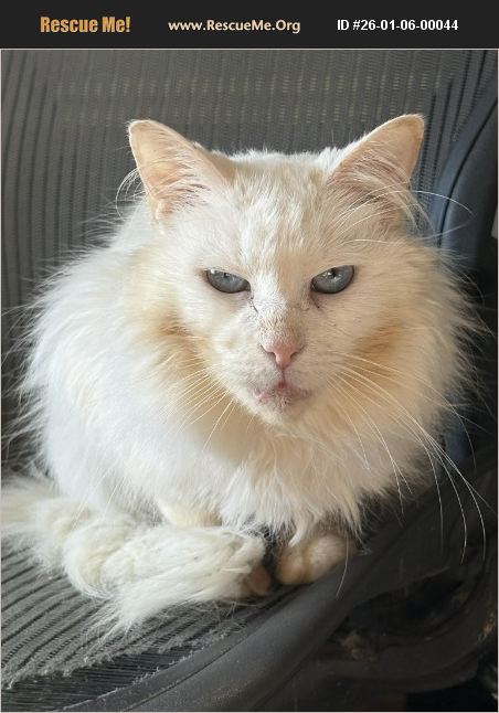 Meet Brie! Brie is a long haired white female cat with beautiful blue eyes! She arrived to us very very matted and with some medical issues (stomatitis) which have been resolved! She is doing wonderful given the fact she had to have almost all of her teeth pulled (still has 6 left!) AND be partially shaved! Brie is almost completely healed and is ready to find a new loving home. She is looking so much better every day and will be a real beauty before long. Brie is 6 years old, spayed and up to date on shots. She was an owner surrender along with Molly, a 12 year old tabby. She gets along with other animals (particularly Molly that she came into rescue with) but isn't especially outgoing with them and we think she might prefer being an only pet.