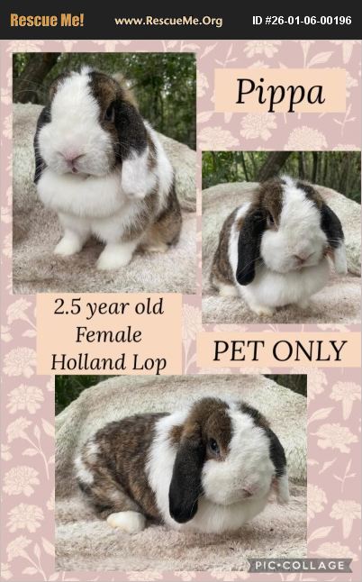 This beautiful girl is Pippa.. I was asked to take her in to find her a loving family. Pippa is 2.5 years old, she is a Holland lop and oh so pretty!! ���%8D Her favorite pastime is to be petted and given treats. If you were interested in giving this adorable bunny a loving home, please text or call (409)-791-9517 or message the page directly at https://www.facebook.com/TheBunnyHutch22/ Also check out our other available bunnies! At https://www.adoptapet.com/shelter/272325-the-bunny-hutch-hortense-georgia