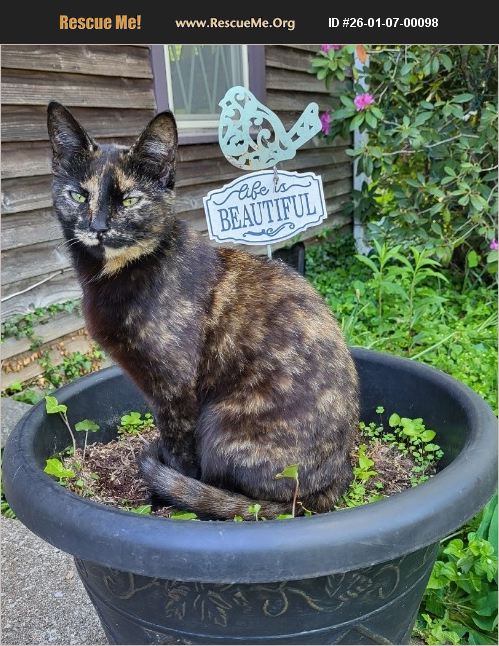 Sweet female tortoise shell calico. Looking for a safe home for this girl. She's a nice cat. Spayed. Rabies vacs. Outdoor. She loves other cats and loves dogs. We can't take her on the road with us full-time, so we need to re-home her.