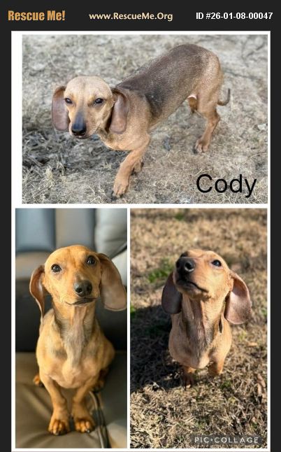 ��%90%BE Meet Cody! ��%90%BE Age: 4 years Weight: 14 lbs Breed: Dachshund �٤%A0 Personality Snapshot Cody is a shy guy at first and needs 3-4 days to decompress and feel safe with new people. Once he warms up, he flips a switch - suddenly he's your shadow, your cuddle buddy, and your biggest fan. When settled in, he's funny, outgoing, and friendly, and he truly enjoys playing with other dogs of all sizes. ��%90 Cute Quirks Professional blanket tunnel engineer Sits in chairs like a tiny human Will happily hide inside a full laundry basket like it's his personal fort ���� Not-So-Great Habits Peeing when excited (improving with confidence and routine) ��Z� Training & Manners Leash: Good on leash with a harness Dog Door: Knows how to use it Crate: Loves it and does great House Trained: Mostly Door Dasher: No Jumper: Yes - only when excited Counter Surfer: Absolutely not (his legs are way too short) �s� Energy Level Medium - playful but also very happy to lounge and snuggle ��%8D� Motivation Food motivated (easy to train!) ��%90� Social Skills Dogs: Great with dogs once he warms up New People: Very shy at first; needs time and patience Kids: No small children ��s� Car Manners A little nervous, but overall does well �%9D%A4��%8F Favorite Things Blankets, couches, and being as close to his person as physically possible ��%8F� Best Home Scenario A calm, quiet home with another playful dog or two, minimal visitors, no small children, and adopters willing to give him the time he needs to feel safe. ��θ Fence Requirement A fenced yard is required ��%90%BE Adoption Info: All of our animals are fully vetted, which includes spay/neuter, up to date on vaccines, wormed, heartworm tested and treated if necessary, up to date on flea/tick/heartworm prevention, and microchipped prior to adoption. Our requirements are non-negotiable and include the following: All current pets in the home must be spayed or neutered if over 6 months of age, unless there is a documented medical exemption with veterinary confirmation. All current dogs must be up to date on Rabies and Distemper/Parvo (DHPP) vaccinations. All current dogs must be on consistent, consecutive heartworm prevention. Past dogs listed on the application must also show a consecutive history of heartworm prevention. To start the adoption process, please fill out our application here: ���� https://www.shelterluv.com/matchme/adopt/WAG/Dog Please also take a moment to read our requirements located in the application. Please note: The dog you're applying for might already have a meet-and-greet scheduled, be on a trial with another family, or has been offered to another rescue within our network. Don't worry though - we're always happy to help you find another great match if that happens! Our goal is to make sure every pup ends up in the best home for their needs (and yours too!).