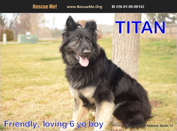 ***NEEDS FOSTER or FOREVER HOME*** Currently in Boise boarding kennels Meet TITAN! TITAN is a 6 year old German Shepherd with a heart as big as his 95-pound frame. He's smart, loyal, obedient, playful, and incredibly loving/affectionate. TITAN enjoys bath time and splashing around in backyard water play and snow--though he's not a fan of swimming in lakes. He can entertain himself for hours with his favorite rope toys and balls. TITAN has not been around cats or livestock. He has occasionally been around elementary school kids and showed no reaction to kids playing on the school grounds during a recent walk. TITAN has a medium energy level, enjoys the company of other dogs, and has never shown any reactivity. TITAN walks well on a leash and enjoys car rides. He jumped right into a volunteer's vehicle at the beginning of a walk. TITAN has been living outdoors, so will need some reminders for housetraining and crate-training, but he's a smart dog who should pick it up quickly in the right environment. TITAN will be neutered, microchipped and current on vaccines for his forever family. Please open your home and heart to this loyal boy to help TITAN find his next safe and loving chapter. MORE PHOTOS: https://photos.app.goo.gl/GZo1Q18frKWWnE3XA Complete an easy, online application to meet TITAN in Boise. APPLICATION: https://forms.gle/U3UUbdpNzZVpxP9h8 BACKGROUND: TITAN and his brother ZEUS lost their family after they experienced some health challenges and caring for a child with special needs.