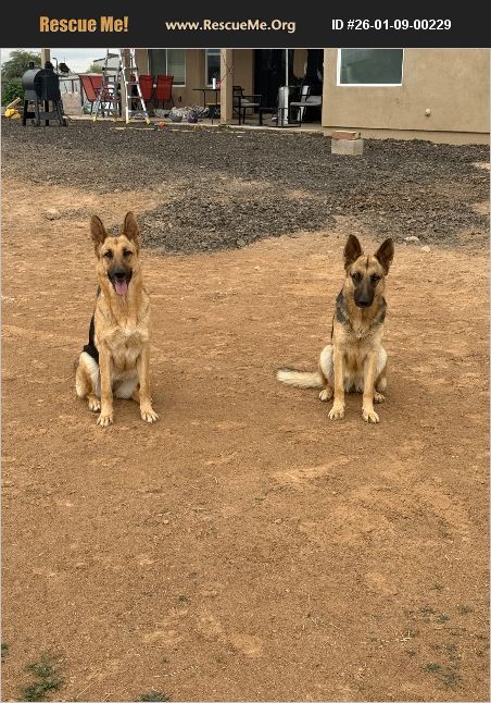 2 sweet young fully bonded German Shepherds fully of energy and eager to learn. They take a little bit to warm up and then want all the attention you can give them. Overall seem to be in good health, but under weight. These two girls must be kept in the same home as they relay on each other. They were found abandoned in the desert so history is unknown.