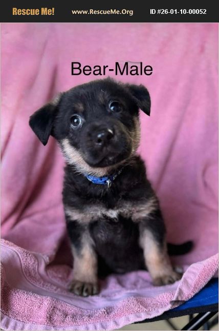 Bear is one of 10---yes, 10----adorable GSD mix pups. Mom is a 65 pound GSD mix. 8-9 weeks. 7-8 pounds. Very sweet temperament. Dad unknown. These puppies are sweet, squishy, fun little pups. Coming to Massachusetts in February. Apply www.sunnypawsrescue.org