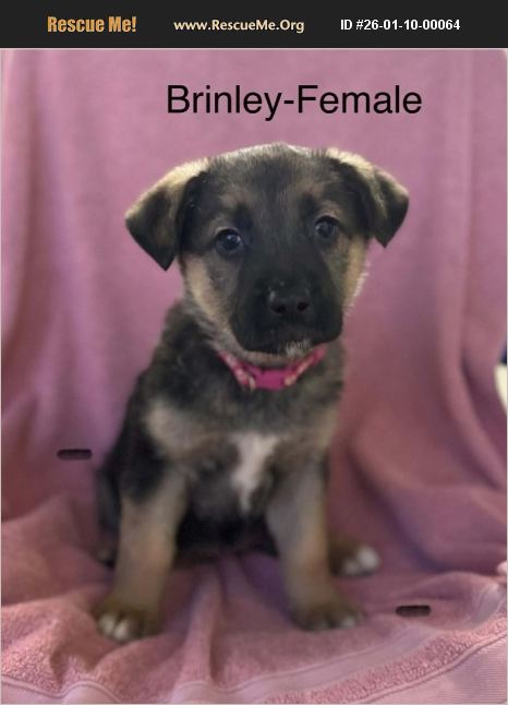 Brinley is one of 10---yes, 10----adorable GSD mix pups. Mom is a 65 pound GSD mix. 8-9 weeks. 7-8 pounds. Very sweet temperament. Dad unknown. These puppies are sweet, squishy, fun little pups. Coming to Massachusetts in February. Apply www.sunnypawsrescue.org
