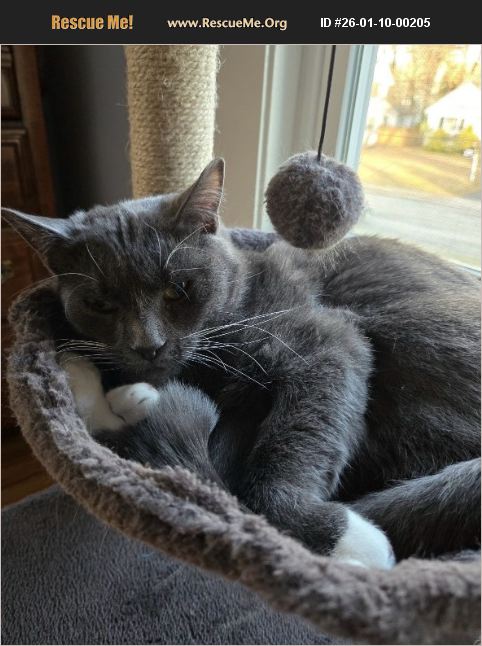 Adopt Boots!! AKA: CEO of Personal Space | Emotional Support�'�| At a Distance Boots, a one year old grey/white cat, is not here for your clingy human ways. He's not into hugs, squishes, or being scooped up like a sack of potatoes. Boots believes in boundaries, mutual respect, and the art of ignoring people while sitting next to them. He likes you, he does. He'll nap near you. He'll sit in the same room. He'll even play with you- but only until he's emotionally drained and needs a break from your overwhelming enthusiasm and sticky little human hands. His Vibe: �'ۢ Independent king who wants your love from six feet away. �'ۢ Friendly-ish with other cats who also don't believe in unnecessary touching. �'ۢ Will vibe near you, but don't even think about cuddling unless he has signed the consent form. �'ۢ Low-maintenance in the affection department: no cuddling, no smothering, no neediness. Just feed him, admire him, and respect his boundaries like he's an A-list celebrity. Meows at you when he's looking for attention!! Who Is Boots Looking For? Someone mature enough to love a cat for who he truly is: A mysterious roommate who lets you live in his home, feeds him on time, and buys toys to play with.
