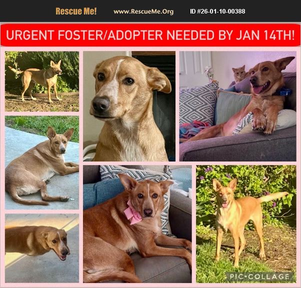 911 URGENT! HARLEY NEEDS A HERO! This is one of the most heartbreaking pleas we've ever had to make. Why do people wait until the very last minute and think a shelter is the solution? What about the dog- the loyal family member who did nothing wrong? When did they become disposable? Harley, a 1.5-year-old Basenji/Australian Kelpie mix with the purest heart, lost everything she knows when her family moved and couldn't take her. She was going to be dumped at the shelter if help didn't come in time. Thankfully, a temporary foster stepped up but only until January 14th. That gives us LESS THAN ONE WEEK to save her life. We cannot let this sweet girl walk through shelter doors she may never walk out of. She doesn't deserve this. She has SO much love still to give. We are BEGGING for an URGENT FOSTER or FOREVER HOME. Harley's life depends on it. Meet Harley: Harley is a young soul who believes every person she meets is a new best friend. She is full of joy, love, and personality. 1.5 years old. Spayed Fully vaccinated. Microchipped. Housebroken Harley is an absolute crack up- she LOVES to 'talk' to you and will happily carry on a conversation, talking right back with her adorable Basenji-style chatter. She will keep you laughing and smiling every single day. She gets along beautifully with all dogs- big or small and loves to play. Yes, she's great with cats too- gentle, respectful, and sweet. She's been around children and did wonderfully. Harley LOVES people. All people. Her tail never stops wagging. She walks well on leash, learns quickly, and just wants to be close to her human whether that's playing in the yard or curling up for cuddles. She is truly one of those once-in-a-lifetime dogs. THIS IS LIFE OR DEATH. Losing her home was not Harley's fault, but she will pay the price if we don't act fast. We cannot let her become another innocent life lost. Her hero is out there and it might be YOU. If you can foster or adopt Harley, please contact: Jennifer with Pumpkin Pawz Rescue at (714) 366-8170 (text is best). PLEASE SHARE FAR AND WIDE. Every share gives Harley another chance. Every minute counts.