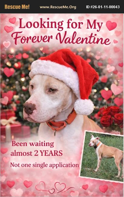 Update Poor Cardi I just don't understand. Not one single application. Not one person has said 'yes' to this incredible girl - and it breaks my heart. Cardi is truly an A+++ girl. Sweet. Loving. Gentle. Loyal. She has so many wonderful qualities and so much love to give. Her only 'flaw'? She needs to be the only pet and we know those homes are out there. We know they exist. Somewhere, there is a quiet home, a couch with room for one perfect girl, and a human who doesn't realize yet that Cardi is the missing piece of their heart. I keep praying her special angel sees this post. Instead of waiting for Santa she is now patiently waiting for her special valentine to play ball with her , Someone to love her, Someone to choose only her, Someone who will look into her eyes and say, 'You're mine. You're safe. You're home.' Please don't let this sweet soul be overlooked. Please share. Please help Cardi find the love she has been waiting for far too long. The holidays came and went and sweet Cardi never got her only wish - a forever home. She's still here, her little Santa hat on, eyes lifted to the sky, as if she's waiting to see Santa's sleigh roll in just for her. And it breaks me in a way I can't even explain, because I don't have the heart to tell her that Christmas is over. I'm still hopeful praying, believing, whispering into the universe so new years magic that her human finds her now, and starts the New Year with compassion and a once-in-a-lifetime kind of love. It takes one person to change everything. Be that person for Cardi. A new year a new beginning a saved life.I Cardi's Bio is below , she is such a lovely sweet girl , you can text me for a video and you can see it for yourself . This sweet, beautiful girl is spending 23 hours a day locked in a cage, patiently hoping that today will be the day her miracle arrives. And with the holidays so close it's devastating that she is still alone. If you're reading this, I'm begging you - please give Cardi a chance. Let her holiday miracle be YOU. Cardi's story is truly heartbreaking. She is a 5-year-old angel who was pulled from the brink of euthanasia at a high-kill shelter. She was literally out of time and now, by a miracle, she's here - alive - just waiting for a family to love her. And oh, is she easy to love. Housebroken,Crate trained, Walks beautifully on a leash, Spayed & fully vaccinated,Ready to walk right into your heart and your home!! No training needed just love. She is affectionate, loyal, and a total love bug. She adores car rides, sunbathing, cuddling, and being close to her people. The kind of dog who makes your house feel like home. Cardi does need to be the only pet, and because she's a strong girl, kids over 12 are best but in return, she will fill your life with loyalty, laughter, and unconditional love. Are you the unicorn home she's waiting for? No other pets just her, finally being someone's whole world. Right now, Cardi is in Laceyville, PA and we only have a few days to find her a foster or forever family before she loses her safe place. She does not deserve to end up back in a shelter where dogs are euthanized every single day just for space. She deserves a soft bed. A warm hug. A family. A life. It is absolutely heartbreaking that this girl is sitting in a cage for 23 hours a day when all she wants is to love someone. Please let's break her free. If you can foster even as a trial that is an option. If you can adopt you will never regret saving this soul. Let's make Team Cardi happen. Let's give her the life she's been waiting for. Run to the Rescue where Love and Peace will follow. Lets bring in the new year making a huge difference to one sweet girl !!!! Text Kat 516 457-3678