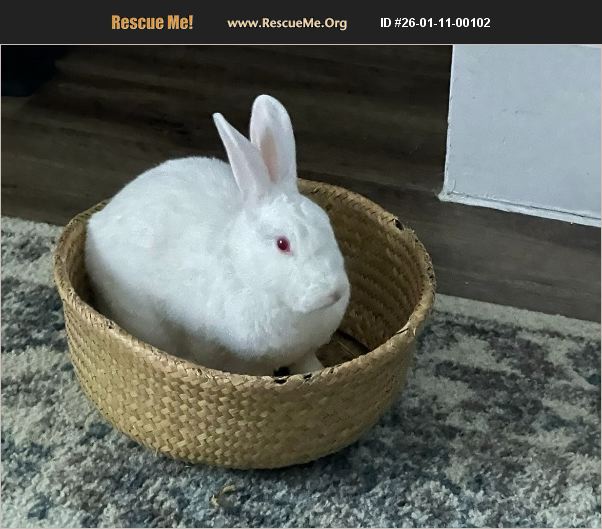 Nancy is a sweet younger rabbit (~3 years old). She is smaller (about 4-5 lbs). Her bonded mate recently passed away and she is in need of a new home that can give her lots of attention and love. She is a funny girl who loves baskets and snuggling in blankets. She loves free roaming around under supervision and binkying as she explores. She is a little bit timid at first but warms up to you quickly and enjoys head rubs and petting. Can provide tons of supplies, a large cage, a hay feeder, pellets, hay, water fountain. Basically everything you need to care for her aside from lettuce and veggies. Preference: Someone with another rabbit who is looking for a friend or someone who desires a second rabbit eventually to bond with her.