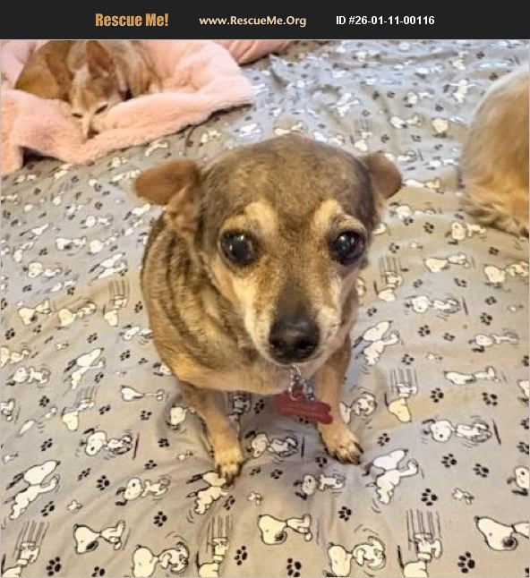 Hi there! My name is Jackie, and I'm a small chihuahua with a sweet soul. I can be a little shy at first, but once I feel safe, my gentle personality shines through. I'm a well-mannered girl who's housebroken and knows how to use both a doggy door and potty pads. I get along nicely with other dogs and politely avoid cats. Because I'm sensitive and can be easily startled, I'd love a quiet, loving home without small children-somewhere I can feel safe, cherished, and adored forever. Jackie is 12 years old and 9 pounds. https://www.vermontenglishbulldogrescue.com/non-bulldog-application/