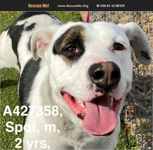 Shelter is FULL. Transport help may be available. * 2 year old Pit Bull Terrier * weighs 53 pounds * heartworm negative * not yet neutered but he will be * owner passed away * may be shy at first but quickly warms up * greets you with tail wags at his door * easy to leash and walk * welcomes all pets and attention * appears housebroken * submissive and eager to please * attentive and listens well * welcomed all pets and attention * paid no mind to other dogs outside - meet and greets always encouraged if you have pets Spot is a sweet and handsome boy. He will show off his loving side once he gets to know you. He wants nothing more than your love and affection. Spot greeted me with plenty of tail wags. He welcomed all of my pets and attention. He took treats easy and kissed my hand softly as a thank you. Sadly Spot's owner passed away and now he is just waiting for someone to come along who will give him some love and a forever home. Our shelter is full can you help Spot out?