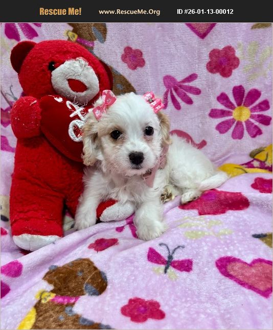 Hi! My name is Lily. I was rescued from Porterville, CA and I'm safe with my rescue in Oregon. I'm 8 weeks old, up to date on my puppy vaccines, microchipped and learning to use my potty pads. I've also had my first dewormer too. I'm quiet, very sweet and affectionate, and I am a little shy too. I do like to play with my sisters and get excited to play with the other dogs here, but I'm still too little. I love to play with my toys, but most of all I love to be held. If you are interested in adopting me, please go directly to my rescues website at savingonepawatatimerescue.org to complete my adoption application. I look forward to meeting my forever family. Love Lily