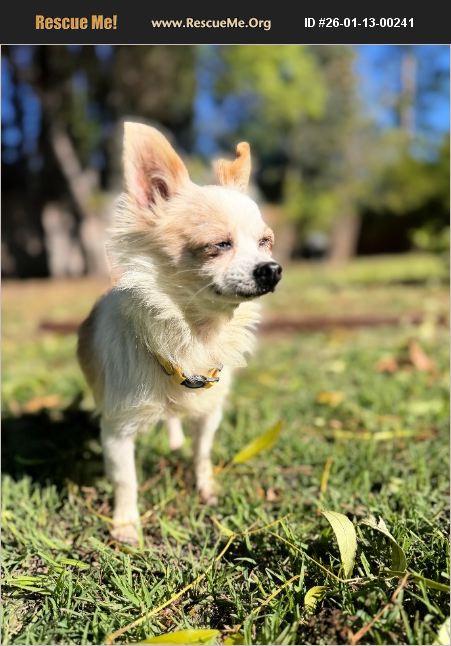 Honey is a 2-year-old, long-haired Chihuahua / American Eskimo mix weighing just 3 pounds! She has a big heart and a deeply affectionate nature. She was found collapsed on the streets, suffering from severe dehydration and a heavy flea infestation. One of our volunteers stopped, stepped in, and gave her the care she urgently needed. Honey received food, water, veterinary attention, vaccines, flea treatment, and a warm bath. Very quickly, her little body - and her spirit - began to come back to life. It was clear she had been waiting a long time for safety and kindness. Honey has never had a family before, and because of that, she bonds deeply with her person. She is the kind of dog who becomes your constant companion - always close by, always tuned in. She loves being included in daily life and enjoys going places with her person. Honey is not suited for a home where she would be left alone all day while someone works outside the home. We are looking for someone who genuinely wants a dog to share life with - car rides (with a proper car seat and seatbelt), high-quality food, a cozy bed, and lots of closeness. She sleeps in bed, loves to snuggle, and has a calming presence that brings comfort and connection. Honey will bring a lot of joy and love to any home Despite her past, Honey is truly mellow and easygoing. She has a calm, grounded personality with a sweet spark of life and curiosity. She is very smart, but because she has never lived in a home, will need support with potty training. When taken outside intentionally a few times a day, she does not have accidents indoors - consistency and routine make all the difference. Due to her tiny size, Honey is not appropriate for homes where coyotes or birds of prey pose a risk. She is wonderful with other dogs, smaller dogs would be best. She is not a good match for puppies or high-energy dogs who may not yet understand their size or strength. If you'd like to meet Honey please complete our adoption application on dexterfoundation.com