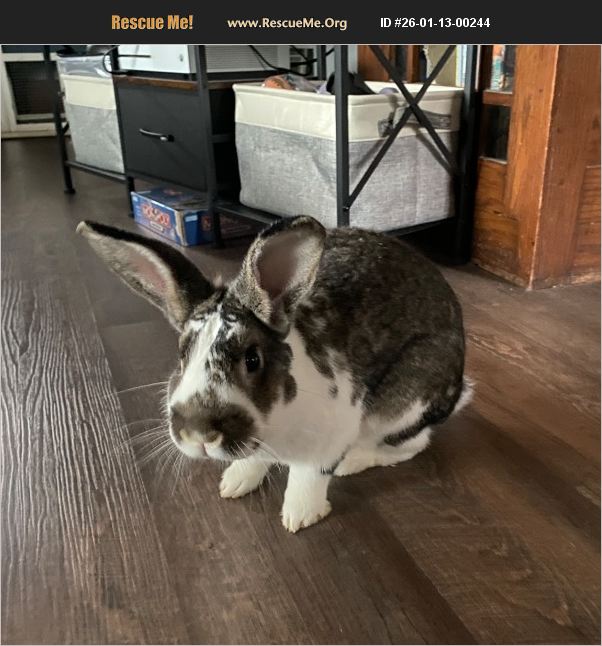 Sweet male bunny we rescued after he was let loose from a neighbor. Needing to find a good home for him. I am not able to keep him due to cats and my work schedule. He is locked up a lot. He is litter trained and doesn't roam the house much. He likes being pet and loves dried mango. He is good with my cats, they are not as friendly and he could use a good friend.