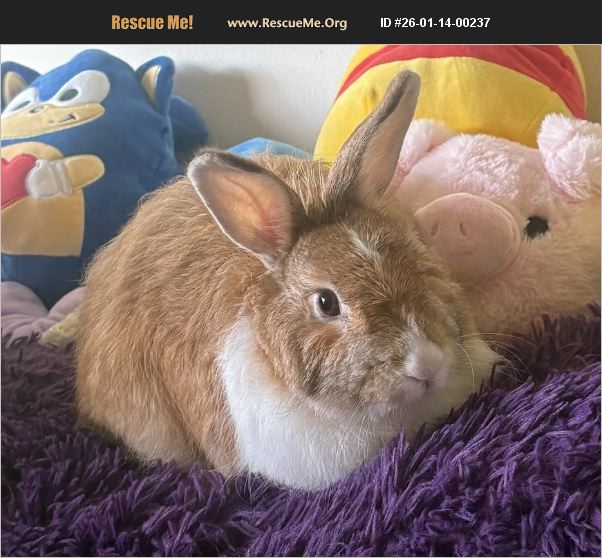 Castiel is a good bunny that gets along well with my cat. He is friendly & loves to play. He loves to run around me / get me to play with him. He makes a cute little oinking sound when he runs circles around me. He also loves being pet. He enjoys chew toys like straw / hay balls & scratching / chewing on cardboard toys. His favorite treats are carrots, cilantro, bell peppers, & apples! Castiel would do well in a home where he can stay indoors, but also be let out to play around the house & not confined to a cage. He is very affectionate & loves attention. Cas gets along well with me, any visitors that I have over, & my cat! Castiel is litter box trained. He has not been neutered, but he did get an initial vet visit when he was found & has gotten his vaccinations. He was found abandoned on my parents' property. I took him in so that he would have a home, but I am unable to keep him since I will be moving out of state soon.