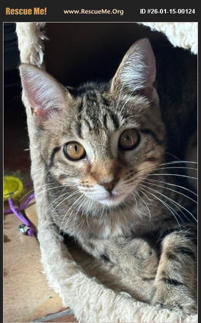 PLEASE NOTE! Fern has cerebral hypoplasia (CH) also known as wobbly cat syndrome. Fern must be adopted by a family with a one story home. Important features of CH: l. Non-progressive, non-contagious congenital brain condition. 2. Common symptoms are jerky, uncoordinated movements, tremors, and high-stepping gaits. 3. There is no cure but CH cats can live a happy, normal life span with minimal supportive care such as non-slip flooring and raised food dishes. From her foster mom: Fern loves playing with her string toy, swatting at toys, being snuggled in her person's arms, and just having quiet conversations with whoever will listen. She especially enjoys watching TV while having her ears and neck scratched. She is an entertaining, funny, and affectionate kitten. In her foster's home Fern got along with other kittens, and loved the family's quiet, kitten friendly dog.
