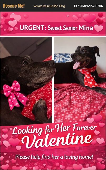 Sweet Senior Alert - Mina Needs Her Valentine Mina is searching for her forever Valentine and this comes straight from the her heart. Mina's story is truly heartbreaking after a lifetime of love, she was surrendered when her owner became homeless. In her golden years, she suddenly lost not just her home, but the only family she has ever known. Now, this gentle soul is quietly waiting, hoping that someone will choose her and let her know she still matters. Mina is a 13-year-old healthy, beautiful, sweet girl with so much love left to give. She is loving, affectionate, loyal, and an absolute A+++ senior. She walks beautifully on a leash, is housebroken, crate trained, and truly one of the best pups you could ever meet. Mina enjoys the simple things cozying up with her humans, watching TV, and just being near the people she loves. She is calm, laid-back, and incredibly gentle, but like many seniors who have lost everything, she does have some separation anxiety though she has already been improving with patience and reassurance. A home with someone retired, home often, or working from home would be perfect for her. Mina watches as younger dogs get chosen, and it breaks your heart to know she is longing for her own family too. She deserves to spend her golden years surrounded by love not locked in a crate for 20 hours a day. This precious girl deserves comfort, warmth, and a soft place to rest her head. Please, consider asking sweet Mina to be your Valentine. She will fill your life with quiet love, loyalty, and gratitude. You truly will not regret it. If you are interested in meeting Mina for adoption or foster, please text Kat at 516-457-3678 Run to the Rescue Where Love and Peace will Follow