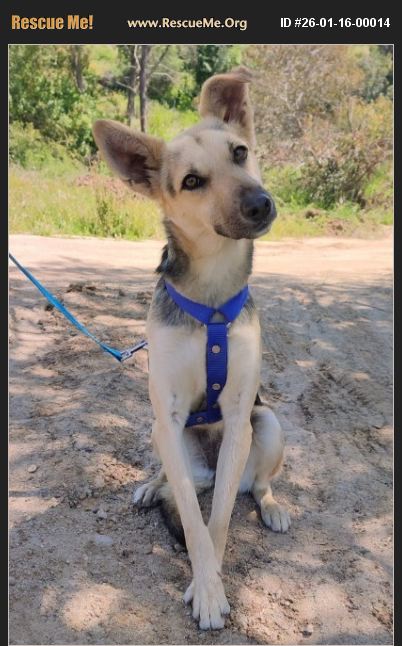 Meet this cutie girl! Weight 26 pounds Size: Medium Location: San Diego, CA Birthday: January 2023 Potty trained, good with dogs, cats, kids and adults. Spay, Microchip, dewormed, fully shot. Mia was found as a baby with her mother, her mother was in very poor condition but Honey was in perfect health thanks to her. Mia is now ready to look for her new family. She is a tender, active, bouncy, and very loving girl, she is shy at first, but if you give her a little time, she manages to adapt. She loves cuddles, treats, she is a little spoiled and is one of the rescue's favorites. She is thin, but in her medical studies she has always been excellent. She is simply thin. She needs exercise to expend her energy, and a giant bed to rest, (She loves to sleep with you) She gets excited when she looks at you and shows you a big smile.