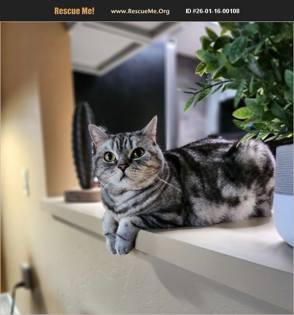 7yr old female BSH. Spayed, microchipped and vaccinated. Indoor only. She knows her name and responds to it. She knows how to open cupboards and loves to nap in them. She is used to a robotic litter box (covered) as well as an open regular litter pan. She is fine with other cats because she ignores them and keeps to herself. She is quiet and likes to sit on your lap.