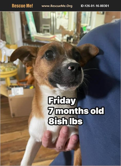 Meet Friday! Friday is about 7 months old and weighs about 9 pounds. Friday is 100% vetted. Friday is ok with kids - no small children, she's good with other dogs. Apply for Friday here: https://form.jotform.com/232936870456163 Friday is available for adoption through: Loveless Dog and Horse Rescue MA license #0391 Not quite ready to adopt but still want to help? Please see our Amazon wishlist here: https://www.amazon.com/hz/wishlist/ls/1R7GFNAJXFCF7?ref_=wl_share