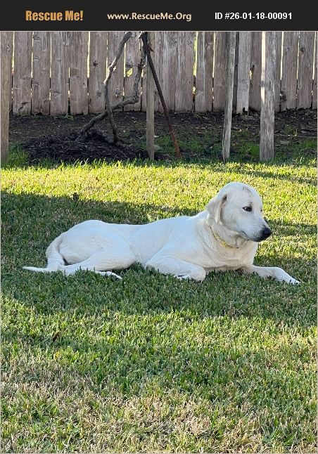 Sweet Anatolian Shepard, unknown if mixed or Purebred. She was found as a stray. I was the finder an I am an adult female, and she was very sweet to me. She has shown no signs of aggression at the shelter. She has been there for a few weeks and no owner has come forward. I would love for a rescue to pull her.