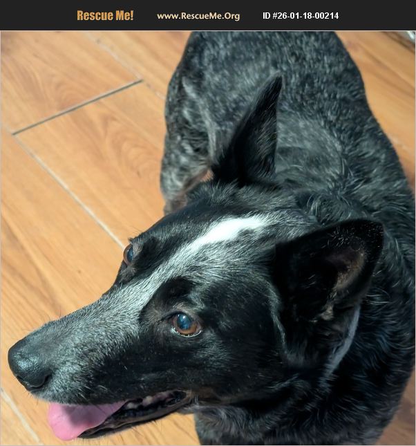 Senior Blue Heeler. Very well behaved. 50 lbs. Prefers to walk on a leash. House dog. Does not climb on furniture. Good guard dog. Owner became homeless and left him behind.