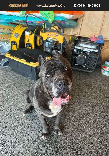 Stark is a Cane Corso Mastiff who currently lives as an outdoor guard dog on a large property in a rural area and has had limited interaction with unfamiliar animals. He does not bite people and is very friendly and playful with new individuals when properly introduced. He is great with kids. Stark is affectionate, energetic, and enjoys playing he is a true lover boy with a lot of personality!
