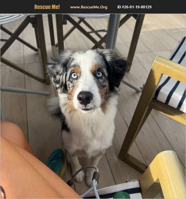 * 5 years, 5 months Pure bred male Mini aussie shepherd - Blue Merle * Sweetest, loyal, loving, smart, crate trained, most playful dog seriously. Starting a new job and my situation has changed and can no longer care for him. He is Fully up to date on vaccines, microchipped, neutered, no health issues * Needs a loving active owner that loves to go on walks and play fetch/frisbee. He requires off leash time every day. Cannot be in a home with small children he will chase and bark due to sheep herding instinct