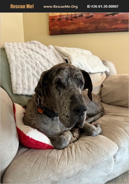 Loki is too big for the house and keeps stealing food off kitchen counters. Is house broken and obedient trained. He has separation anxiety so is best in a home where someone can be there. He does bark at strangers. Currently lives in a house with 5 kids and 2 other dogs.