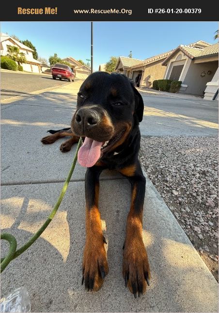 This boy is so freaking adorable! �%A0His name is Otis. �%A0We just love him!! He's about 7-8 months old. Friendly with other dogs and great with people. Cats are unknown, but he is living with a cat so we should know soon if he is ok with them. His only flaw is that he likes to mark a lot. We are working on that. �%A0He knows some basic commands and walks good on a leash. He is crate trained as well. He is a gem! �%A0He will make a very lucky family very happy.�%A0 Our Adoption Process If you are interested in adopting one of our fun-loving, 'not-so-rotten' Rotties, you will be asked to fill out our adoption application which allows us to get to know you better. This ensures the dog you are interested in is a good fit for your family and lifestyle. You can access our adoption application by visiting our website at www.rottenrottie.com, clicking on Adopt a Rottweiler �z���%8F Adoption Application, and submitting the form online. After reviewing your answers, if we feel the dog you are interested in is not a match for your family, we may recommend a different Rottweiler companion. Once we determine which dog is best for you, we will schedule a meeting at their current home, where they feel most comfortable and act naturally. We require a home check to ensure each dog is going to a safe environment. To finalize the process, an adoption contract must be signed. We also require a rehoming fee, which is typically $500 for most adults and $350 for seniors (6 years and older) or Rottweiler mixes of any age (excluding puppies). Fees for puppies fluctuate depending on the investment required for the litter and whether they are purebred or a mix. These funds are necessary for our organization to continue rehoming Rottweilers in need. All of our dogs are spayed/neutered, fully vaccinated, microchipped, and have tested negative for heartworms. Each dog comes with a collar and a leash. We also address any injuries or illnesses they had upon arrival or developed in foster care; any such conditions will be fully disclosed to the adopter prior to the adoption. Please Note: In almost all cases, we do not adopt to out-of-state applicants. On rare occasions, if we feel it is a perfect match for both you and the dog, we may make an exception for our neighbors in Las Vegas. If you live in Las Vegas and would like us to consider your application, please fill out our Adoption Application.