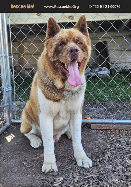 Jax is a 4yr old male American Akita. He is up to date on all vaccines. He does not do good with other dominant male dogs. Loves kids,loves to run. Has lots of energy. Big teddy bear of a dog. Loves to play,snuggle and sit with his companion. He would do great with a big farm land yard or huge fenced in yard. We no longer have room for him in our home as he was a temporary rescue for 6months.