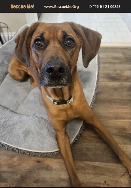 We are located in North Georgia and have a 4 year old Rhodesian Ridgeback/Shepard mix. She was adopted from a local rescue program when she was 8 weeks old. That has since been closed so we cannot surrender her there and local Rhodesian Ridgeback rescues won't accept her because she is not full blooded. While she is the sweetest thing, we are relocating and our work has changed to travel. My husband and I are gone 10-12 hours per day. This is not a good lifestyle for her, nor healthy for her. Her temperament is great, does well with other dogs, LOVES children, and cuddles/sleeps in the bed if you allow her. Again, she is the sweetest dog, but we cannot continue to allow her to not have an accommodating lifestyle.