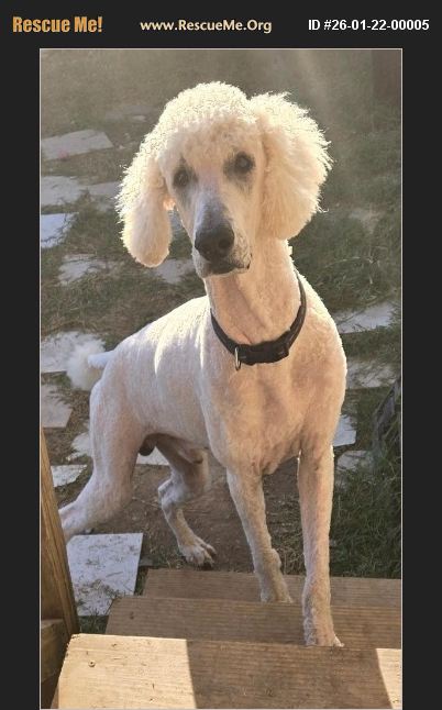 This tall guy is AVERY, actually he had another name after a Game of Thrones character but I did not know that and changed it. He is a purebreed Standard Poodle who is 5 1/2 years old and 63 pounds. AVERY was an owner surrender to our organization at no fault of his own. The living conditions changed in his house after an emergency and he could not go with them. His owner was heartbroken as she had him all his life. She owned AVERY before she had her own 2-leg kids!!! AVERY is very comfortable around newborns and toddlers. He does very well with them, he is patient and tolerate. He came into an environment that is really different for him, more dogs!!!! He is doing good though, he doesn't bother them and their barking does not bother him. He has been playing with the smaller breed dogs while trying to figure them out. The vet says AVERY is a little underweight at 63 pounds and could stand to gain a little bit. He has a healthy appetite and loves treats. So far he knows how to 'sit' and I have not tried any other commands but I will. When I got him, he was quite overgrown and in desperate need of a grooming. The groomer said he is very good at letting her do what is needed except he does not like his nails clipped. She was able to get it done but AVERY was not happy about it. So if that is the only thing that is bad about him then he is a great dog! He readily jumps in the car and does not get car sick. He is leash trained and crate trained. Not a chewer or bothers any personal items. I do not have any cats so I am not sure how he would re-act to them. More pictures available. If you are interested in adopting AVERY, please submit an application on the website below. Thank you. www.roxysk9rescue.org