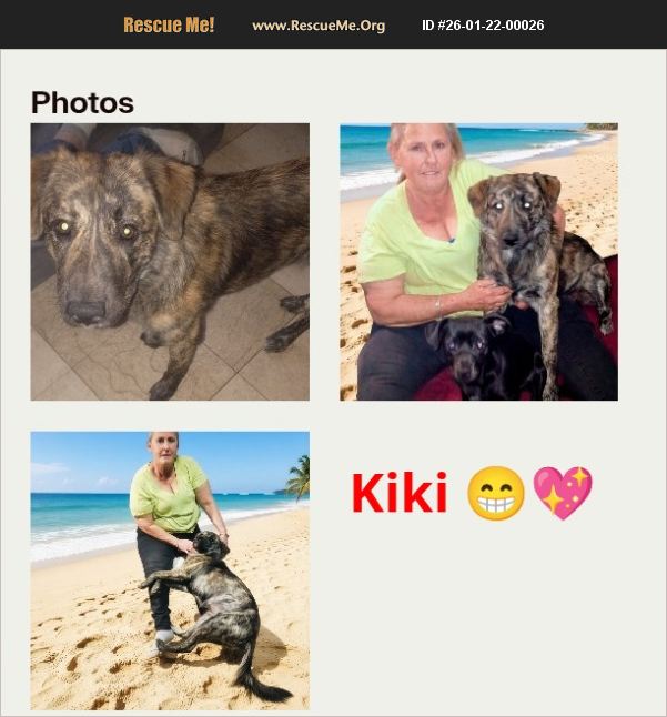 Kiki is a most loved rescued at 6 weeks old. She is now 10 months old and can sit, shake, and lay down with verbal and hand commands. She is a puppy pad trained dog. She loves to go outside but is an indoor dog who loves fruits and vegetables of all kinds. Her favorite is green grapes and ice cubes. She has never been around children so I don't know how she would be. She is a Dutch shepherd mix who does shed. She is easily bored and chews through most cloth toys.She has gone into heat once and is not vaccinated.