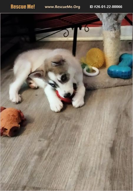 Scottie is an adorable 8 week old purebred Siberian Husky, male. He is a gorgeous color and has brilliant blue eyes. He is sweet and lively and funny and very vocal. He is going to be neutered at the expense of the rescue when he is the appropriate age. He has a stub for a tail, for reasons unknown to us, but that doesn't distract from his good looks. He is healthy and loves other dogs, cats and kids.